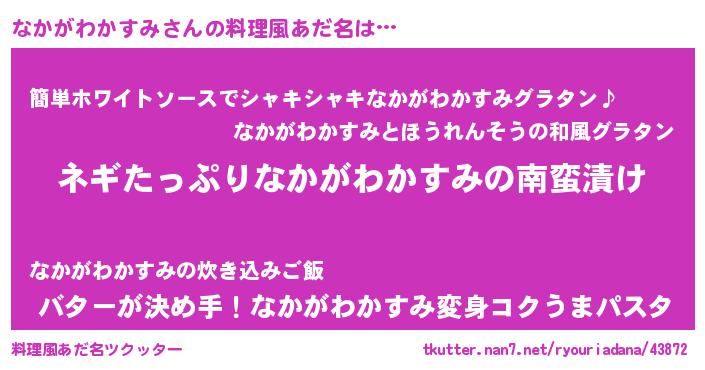 | 胡散臭い通販商品みたいなあだ名 | 『億万長者になれる霊験あらたかなお札…その名も「なかがわかすみ」』 |