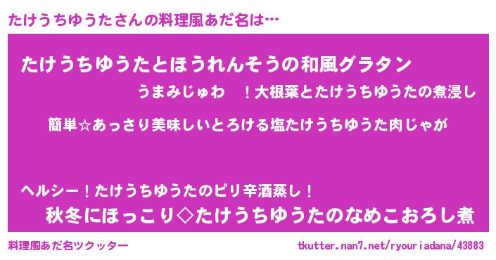 | ヘコむあだ名 | 『たけうちゆうた(遠い目)』『酢こんぶ』 |