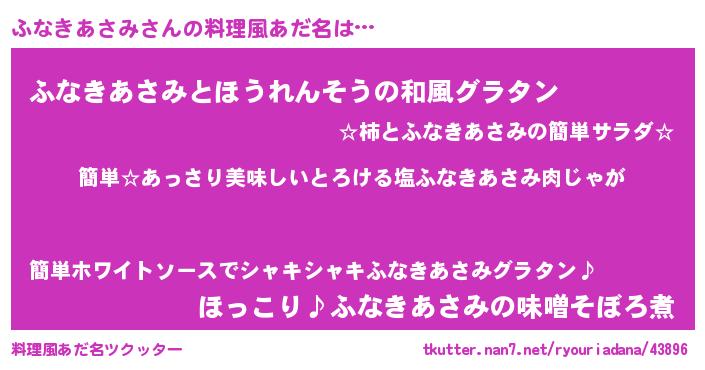 | 意味不明あだ名 | 『永久保存ふなきあさみ』 |