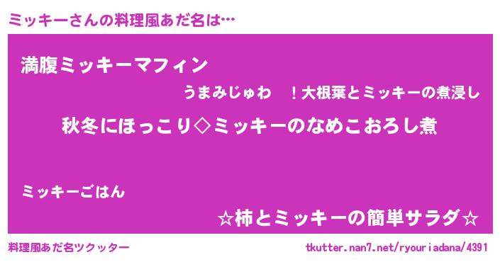 | 男性向けラノベタイトル風あだ名 | 『ミッキーに滅ぼされるだけの簡単なお仕事です』 |