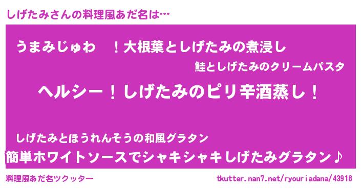 | 男性向けラノベタイトル風あだ名 | 『Re:しげたみから始める異世界生活』 |