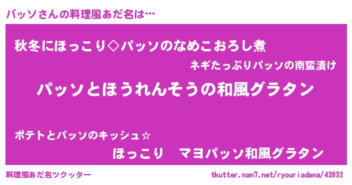 | 男性向けラノベタイトル風あだ名 | 『パッソ~年齢イコール彼女いない歴の魔法使い~』 |