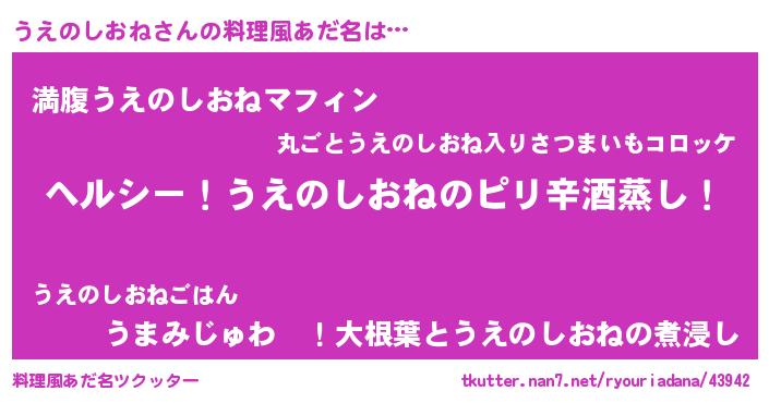| 男性向けラノベタイトル風あだ名 | 『Re:うえのしおねから始める異世界生活』 |