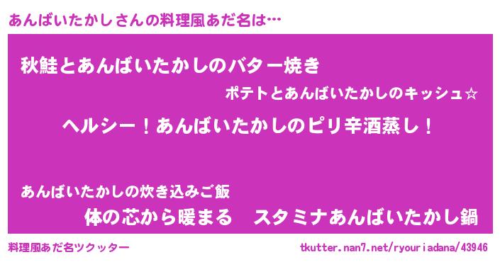| 女子向けラノベタイトル風あだ名 | 『あんばいたかしストレイドッグス』 |