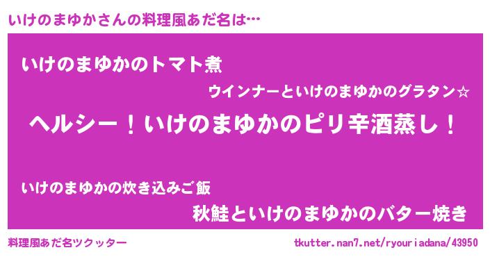 | 男性向けラノベタイトル風あだ名 | 『Re:いけのまゆかから始める異世界生活』 |