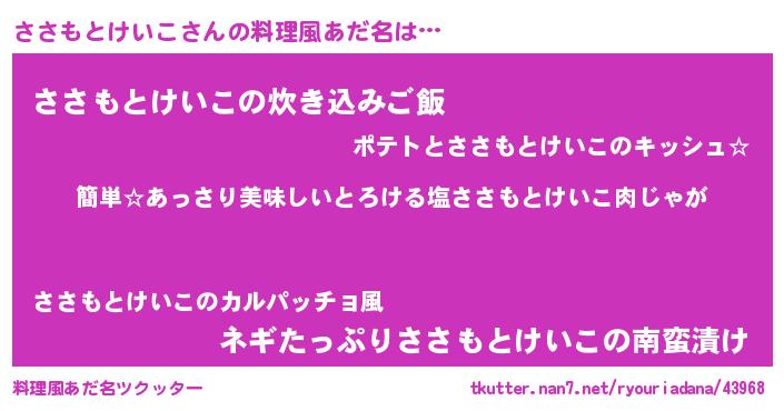 | ヘコむあだ名 | 『ささもとけいこ(小並感)』『ささにー』 |