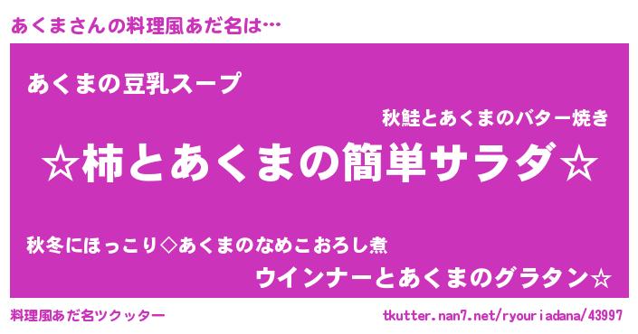 | ヒーロー風カッコイイあだ名 | 『黄金騎士アク』『ウルトラあくまマン』 |