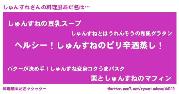 | 意味不明あだ名 | 『自称しゅんすね』 |