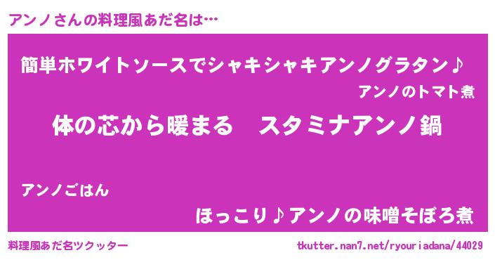 | 女子向けラノベタイトル風あだ名 | 『アンノの雑貨屋さん』 |