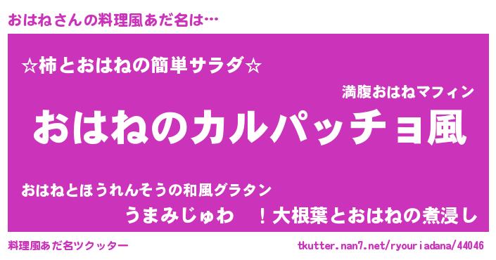| 意味不明あだ名 | 『住所不定無職おはね(84歳)』 |