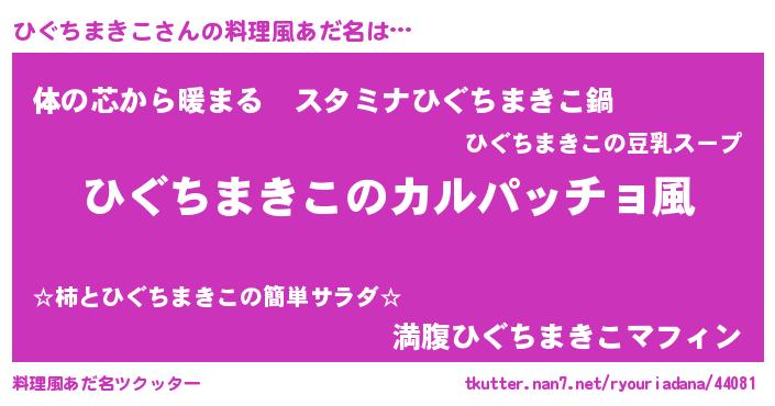 | 男性向けラノベタイトル風あだ名 | 『魔弾の王とひぐちまきこ』 |