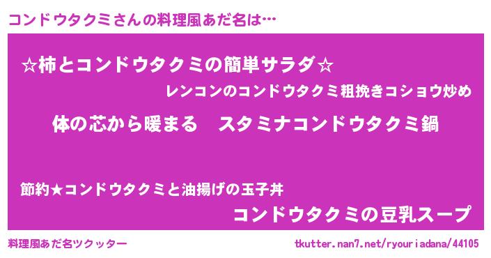 | 欧米人風あだ名 | 『コンドウタクミクリステル』 |