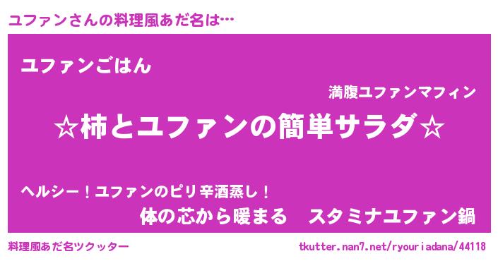 | ヘコむあだ名 | 『豆乳』『ユファン(笑)』『ユフもー』 |
