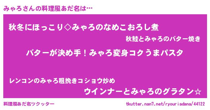 | 女子向けラノベタイトル風あだ名 | 『みゃろ恋絵巻』『横柄みゃろと宰相陛下』 |