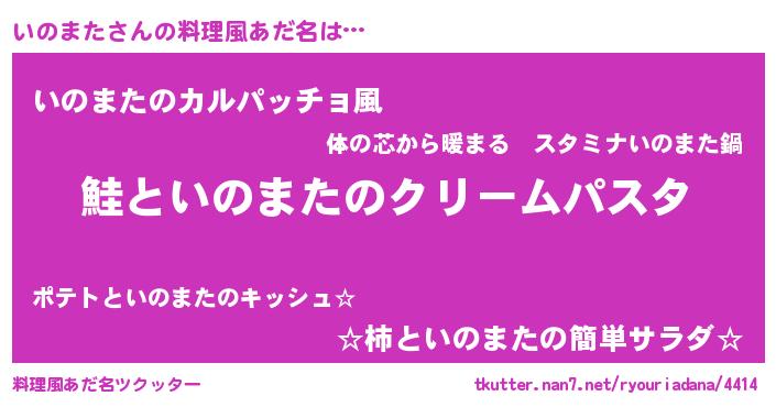 | 男性向けラノベタイトル風あだ名 | 『ノーゲーム・ノーイノマタ』 |