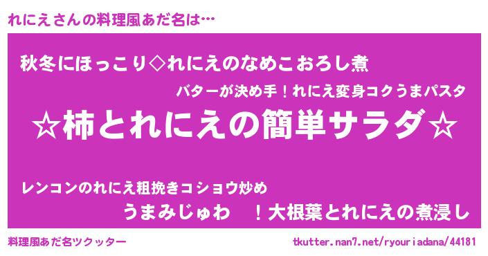 | 男性向けラノベタイトル風あだ名 | 『緋弾のレニエ』『魔法科高校のれにえ』 |