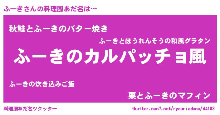 | 意味不明あだ名 | 『住所不定無職ふーき(40歳)』 |