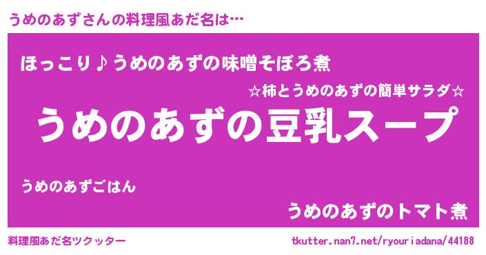 | 女子向けラノベタイトル風あだ名 | 『うめのあずは平凡を望む』 |