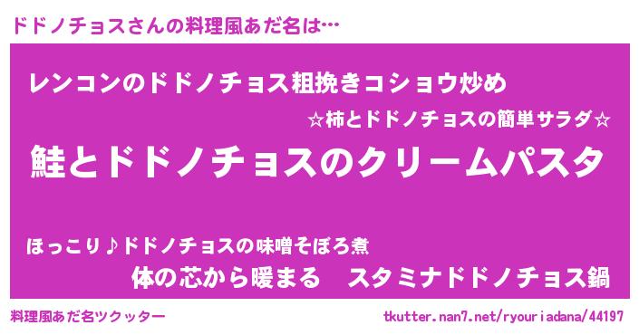 | 女子向けラノベタイトル風あだ名 | 『死神ドドノチョスの再婚』 |