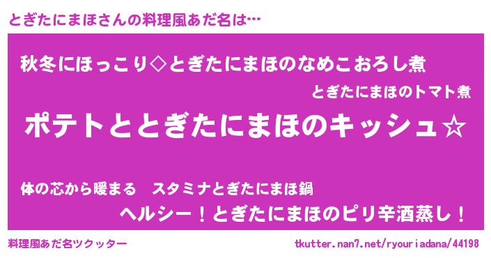 | ポケモン風あだ名 | 『ヒトギタニマホ』『トギゴンZ』 |