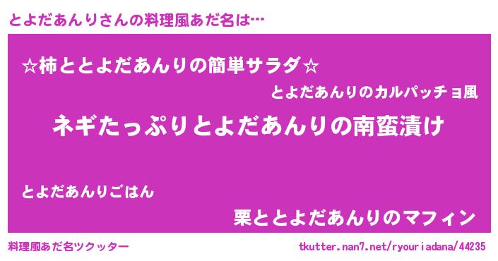 | 男性向けラノベタイトル風あだ名 | 『トヨダアンリアートオンライン』 |