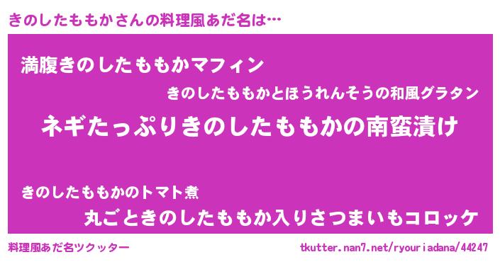 | ヘコむあだ名 | 『きのふぇ~』『きのしたももか(笑)』 |