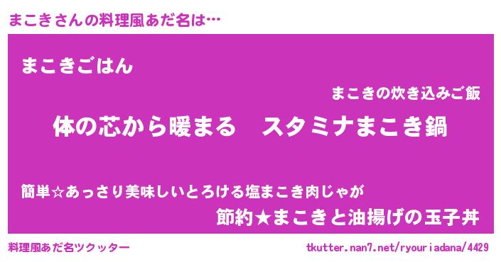 | ファンタジー風あだ名 | 『エターナルマコキー』『マコフェル』 |