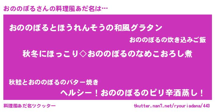 | 男性向けラノベタイトル風あだ名 | 『おののぼるに滅ぼされるだけの簡単なお仕事です』 |