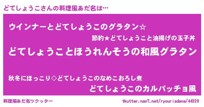 | 女子向けラノベタイトル風あだ名 | 『どてしょうこの玉の輿計画!』 |