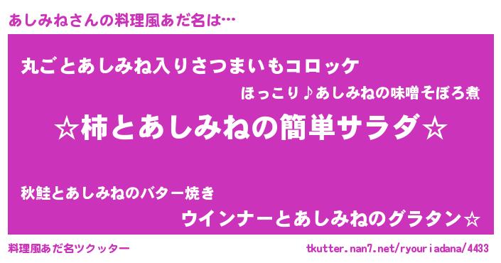 | 意味不明あだ名 | 『住所不定無職あしみね(6歳)』 |