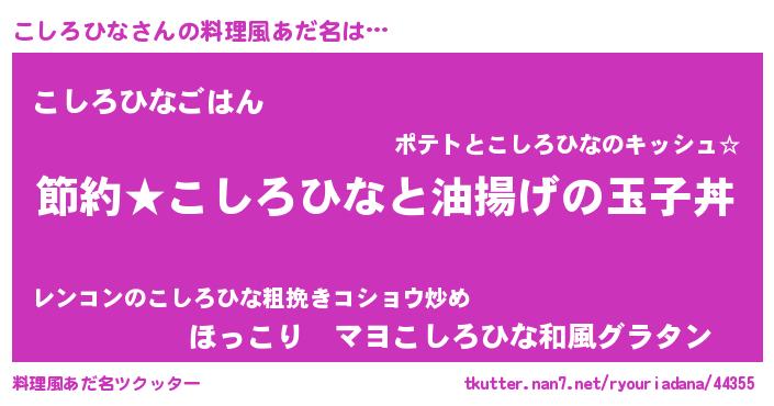 | 意味不明あだ名 | 『ペロリンこしろひな』『自称こしろひな』 |