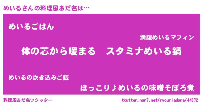 | ヘコむあだ名 | 『つくし』『めいもー』『めいる(笑)』 |