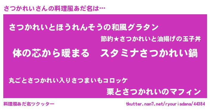 | 意味不明あだ名 | 『さつかれいフォーエバー』 |