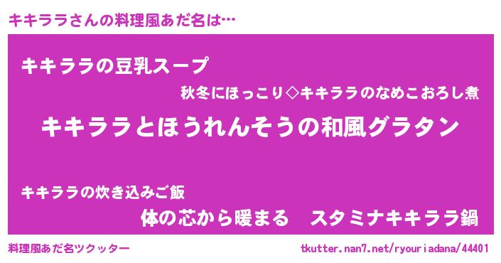 | 女子向けラノベタイトル風あだ名 | 『キキララの玉の輿計画!』 |