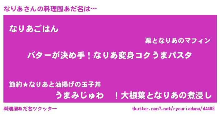| 女子向けラノベタイトル風あだ名 | 『なりあ恋絵巻』『なりあの婚約者』 |