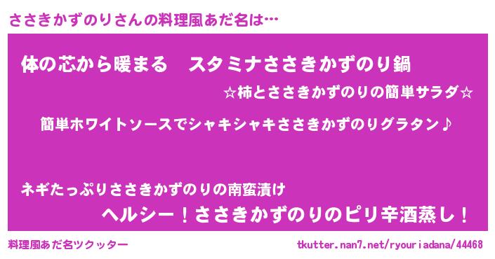 | 男性向けラノベタイトル風あだ名 | 『ささきかずのりの嫁は女の子じゃないと思った?』 |