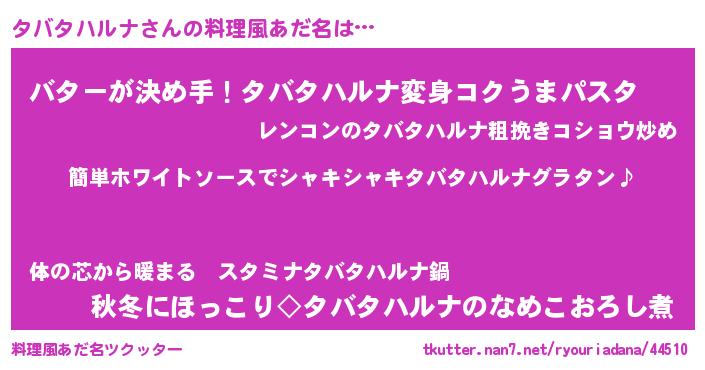 | 男性向けラノベタイトル風あだ名 | 『タバタハルナの嫁は女の子じゃないと思った?』 |