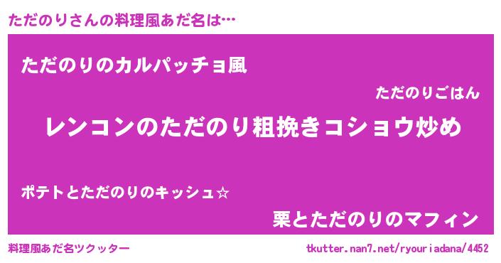 | 意味不明あだ名 | 『自称ただのり』『なめこ科ただのり属』 |
