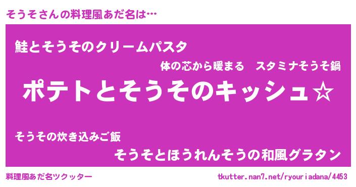 | 自動車の名前っぽいあだ名 | 『ソルトウパン』『ソンR』『ソクア』 |