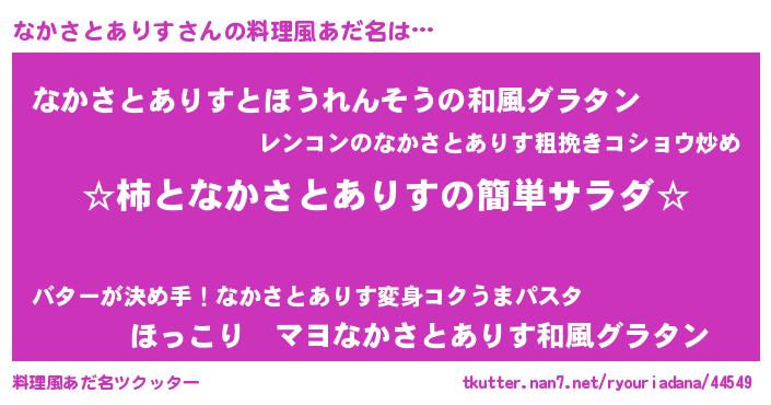 | 恥ずかしいあだ名 | 『ナカサトアリスデラックス』『なかちん』 |