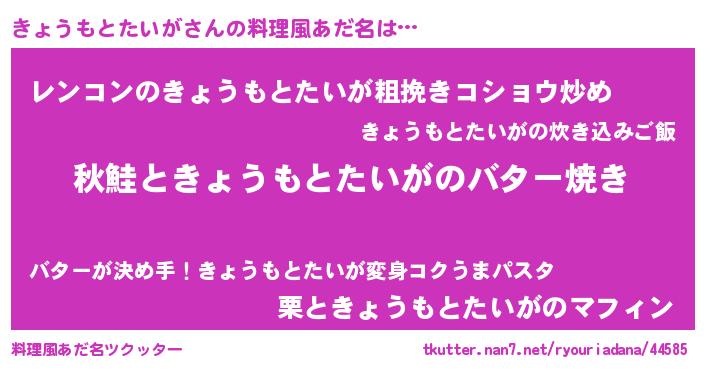 | 意味不明あだ名 | 『永久保存きょうもとたいが』 |