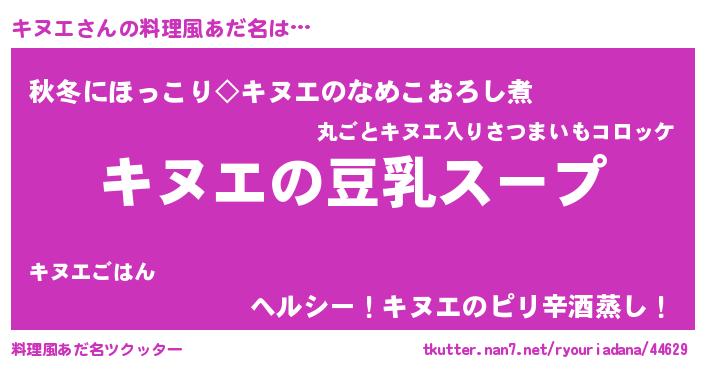 | 意味不明あだ名 | 『とにかく怪しいキヌエ』『自称キヌエ』 |
