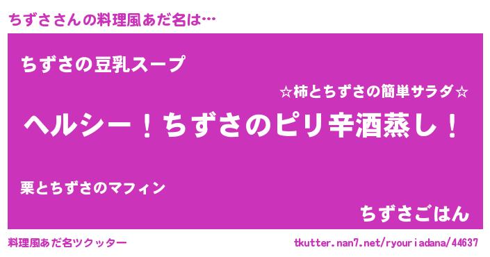 | 男性向けラノベタイトル風あだ名 | 『Re:ちずさから始める異世界生活』 |