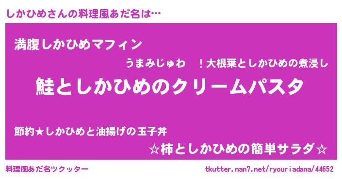 | ヘコむあだ名 | 『しかひめ(苦笑)』『酢こんぶ』 |