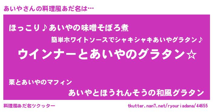 | 意味不明あだ名 | 『あいやフォーエバー』『ペロリンあいや』 |