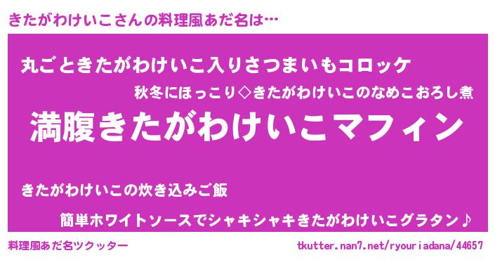 | ヘコむあだ名 | 『きたがわけいこ(苦笑)』『きたを』 |