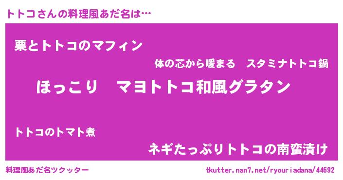 | ヘコむあだ名 | 『トトにー』『牛乳』『トト太郎』 |