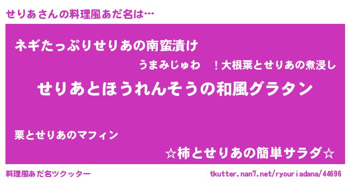 | ヒーロー風カッコイイあだ名 | 『スーパーセリア』『ウルトラせりあマン』 |