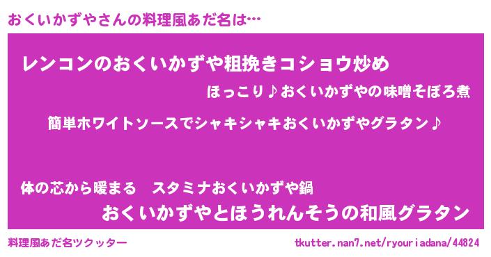 | 男性向けラノベタイトル風あだ名 | 『おくいかずやの嫁は女の子じゃないと思った?』 |