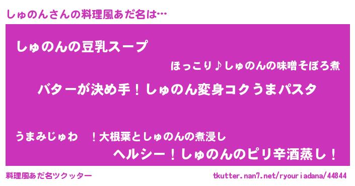| ヒーロー風カッコイイあだ名 | 『慈愛の使者しゅのん』『黄金騎士シュ』 |